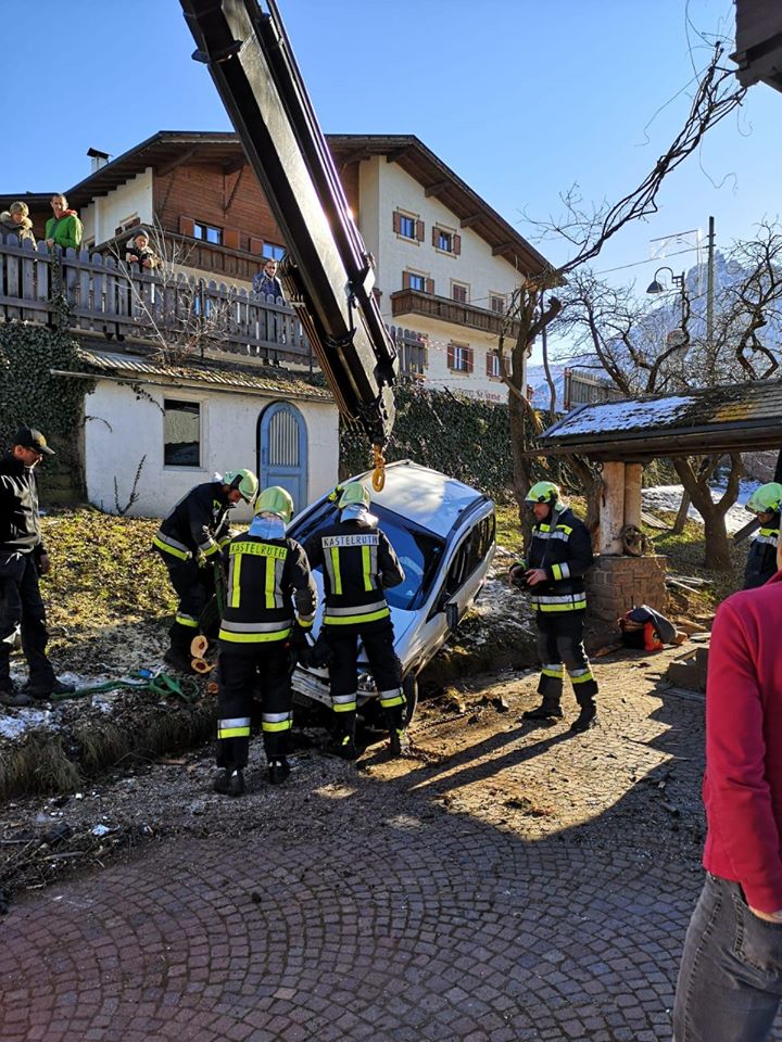 Am 30.12.2019 wurde die freiwillige Feuerwehr Kastelruth um 11:58 Uhr zu einem technischen Einsatz mit Alarmstufe 4 gerufen. Ein PKW war aus ungeklärter Ursache von der Hauptstraße abgekommen. Auf der Höhe der Kastelruther Tankstelle stürzte der PKW über eine Mauer und war gegen einen Baum geprallt. Glücklicherweise wurde niemand verletzt. Die FF Kastelruth sicherte das Fahrzeug und brachte es wieder auf befestigtem Boden, sodass der Abschleppdienst übernehmen konnte.